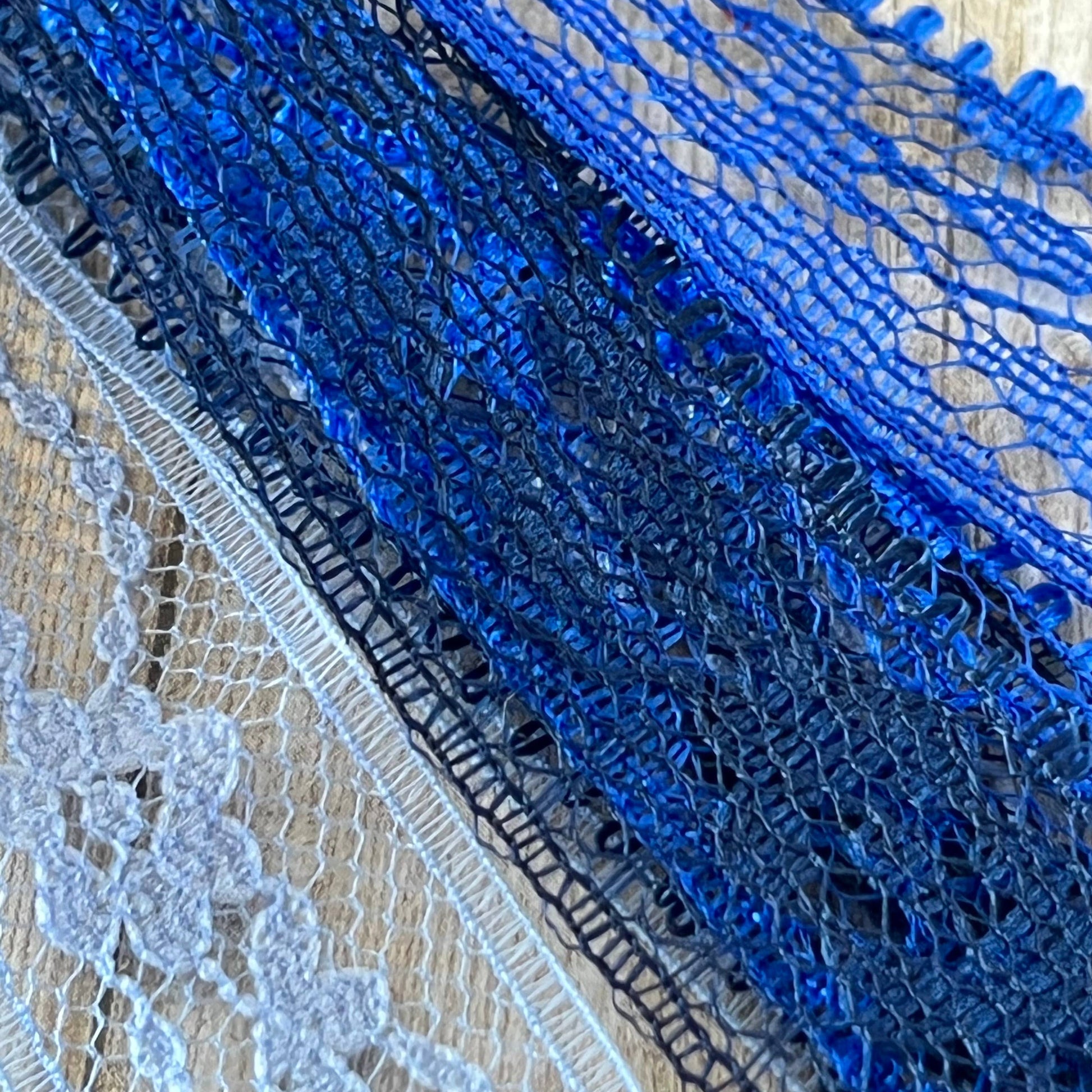 Handcrafted from 3 shades of blue vintage lace. Fun to wear, big earrings that are light weight. 5 inch lace tassel. Hypoallergenic ear wires. Handmade in the USA from vintage lace.