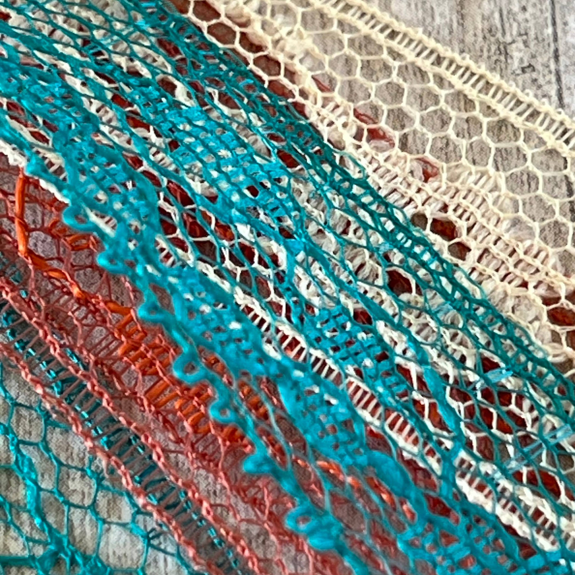 A fun bright pair of earrings, perfect to complement your western look. Fun to wear, big earrings that are light weight. A blend of rust, teal, and cream lace 5 inch lace tassel. Hypoallergenic ear wires. Handmade in the USA from vintage lace.